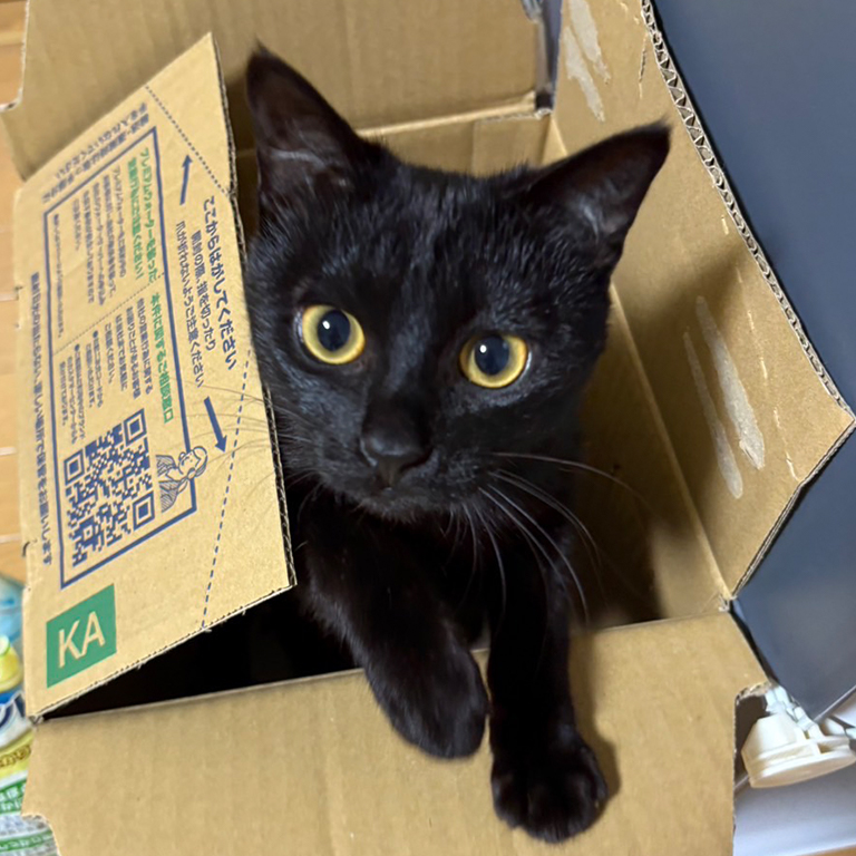 おしゃべりが大好きです。目が合うと「にゃふーん」と言いながらお腹を見せてくれます。